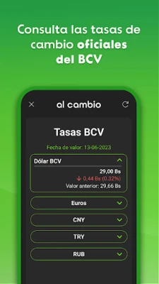 💵 Consultar las tasas oficiales del BCV y convertir en bolívares, pesos colombianos (COP) o reales brasileños (BRL).